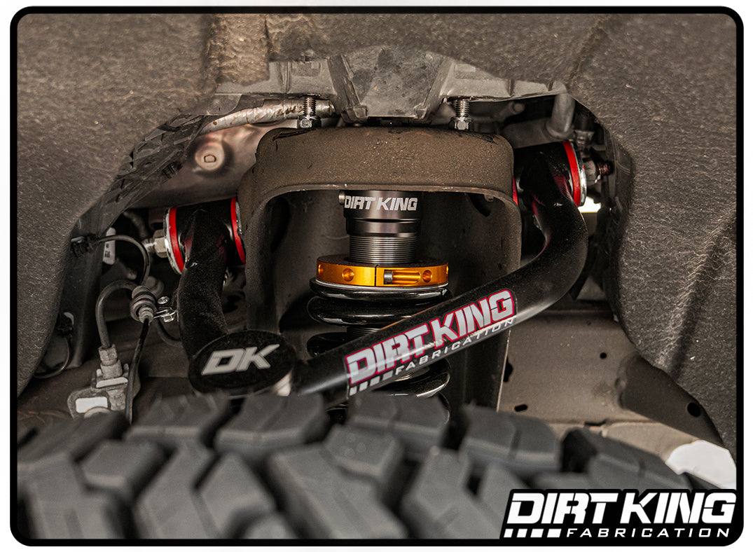 Improve your GM 1500's look and ride quality with the Dirt King 2.0 IFP Series coilovers. They come preset with 2.5" of lift to level your vehicle and include a spanner wrench for easy preload adjustments, especially useful when installing aftermarket bumpers or a winch. Although these shocks don't match the full performance of the Dirt King 2.5 DCA coilovers, they substantially outperform OE shocks by offering a smoother ride over rough terrains such as washboards and potholes. In addition they provide increased wheel travel to allow for higher articulation and improved damping on large dips.