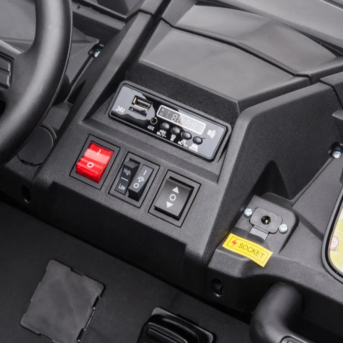 - Thanks to its leather seats, this Ride on Car is comfort on wheels, perfect for intense days of adventures. Its bold design and comfort make this car unique.