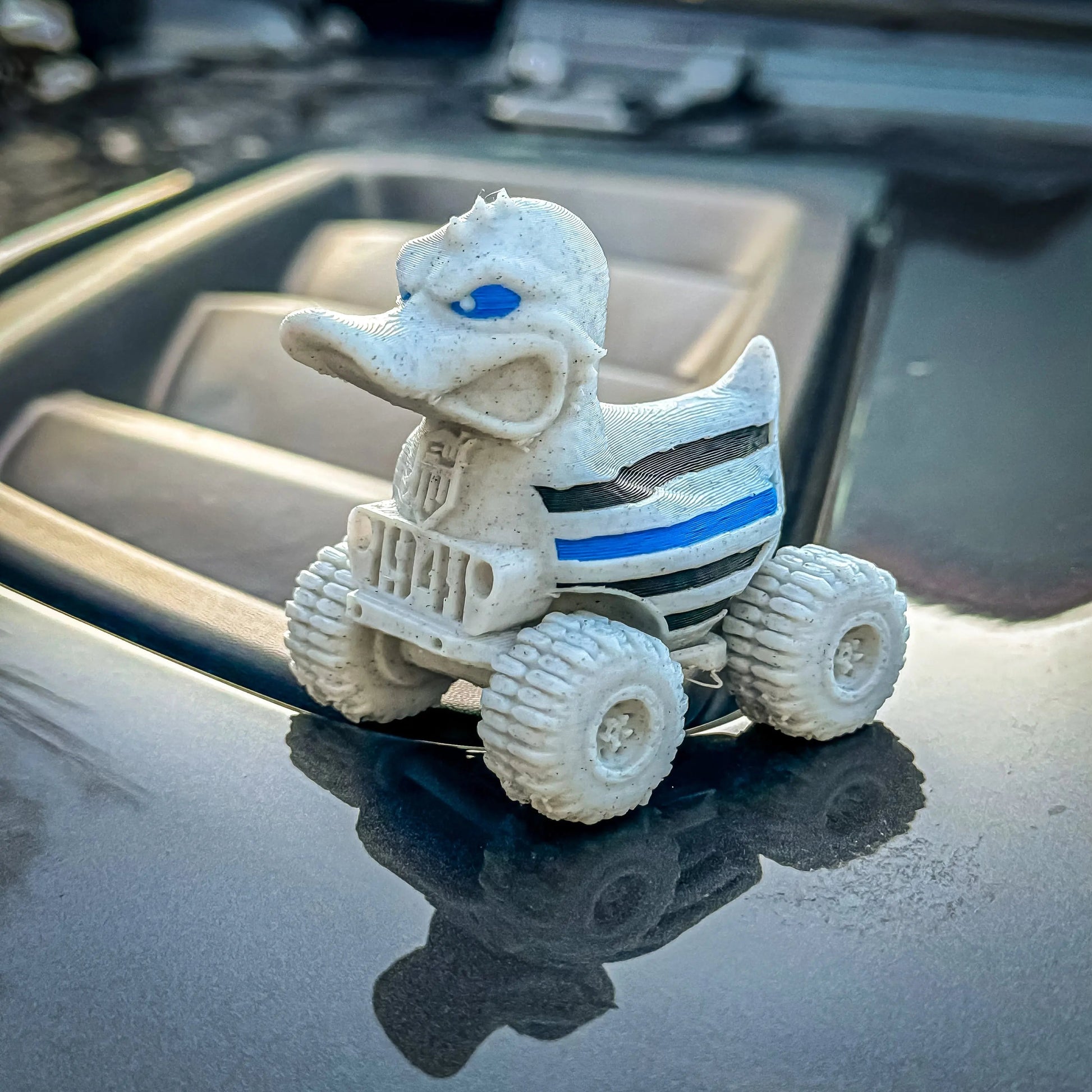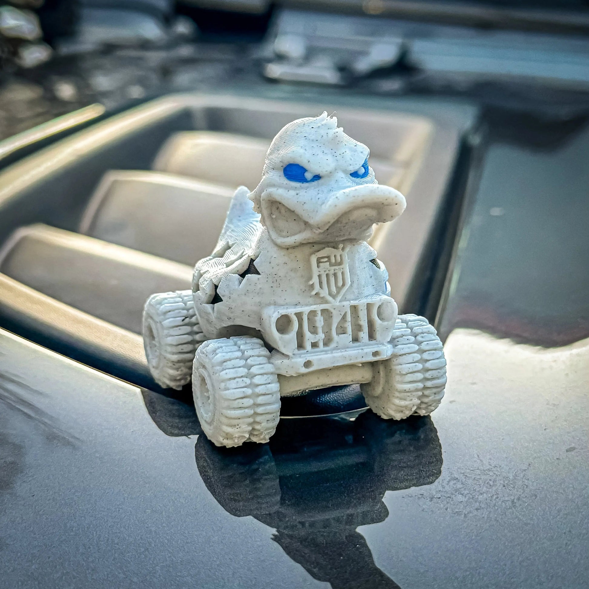 ** DuK's are made from PLA plastic, which can warp in extreme heat. 120-140F heat has shown to cause warping on PLA parts that are under stress, (mounts, arms, thinner parts) These DuK's should not be under any stress, but we urge you to take that into consideration on extremely hot summer days, where car dash locations may reach these temperatures. Our suggested advice is to keep them indoors where moisture, heat and UV rays are not an issue, however, in most cases, they should stand up fine in your car.