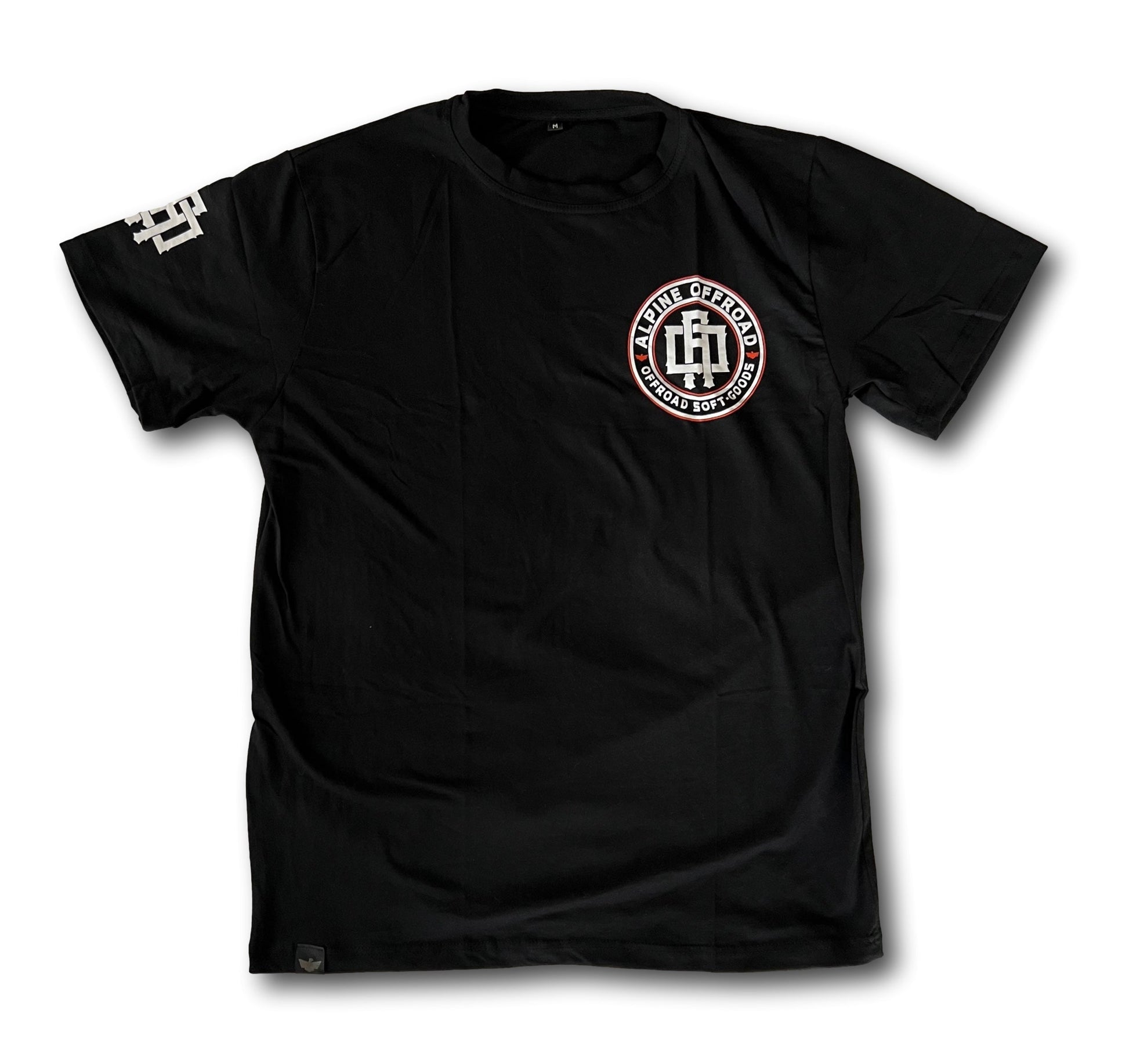 - Embroidered logo on bottom of t shirt