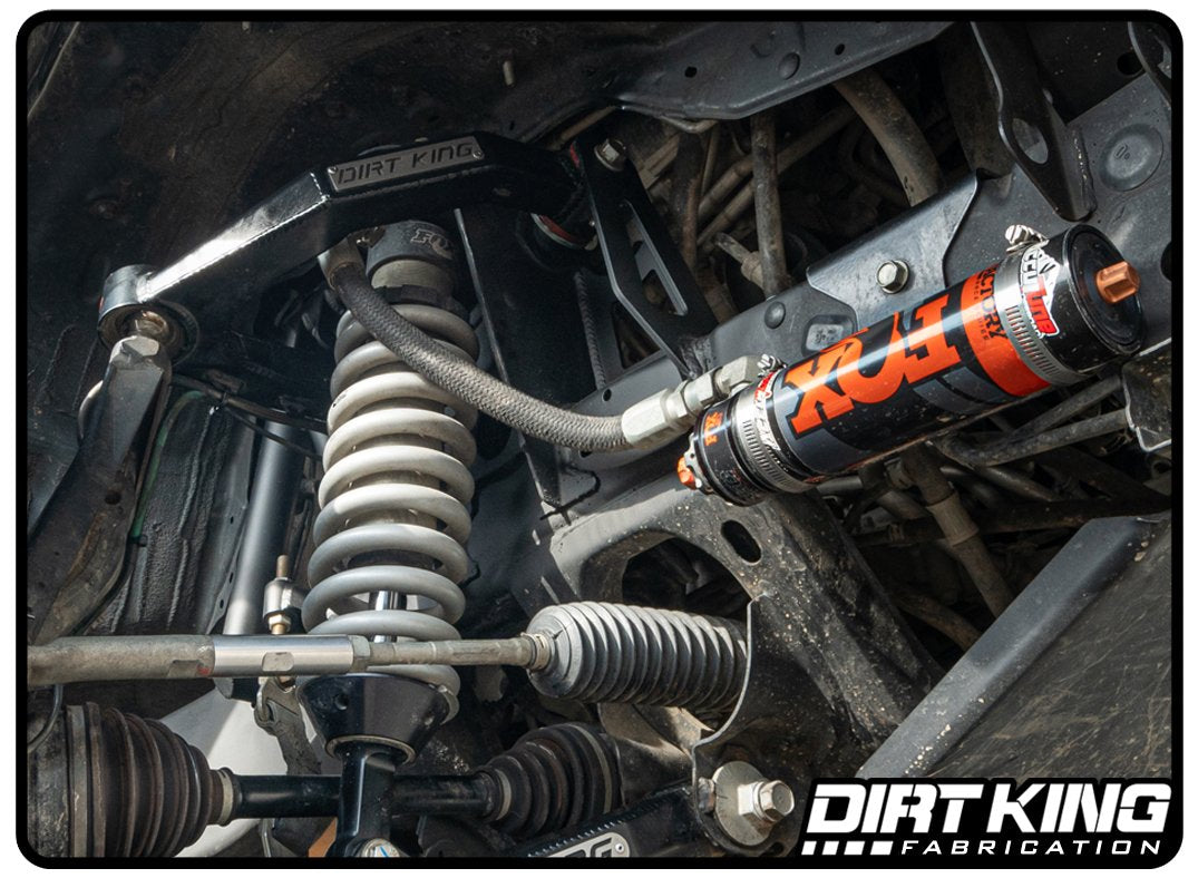 The Dirt King reservoir mounts are designed to bolt in where the sway bar is mounted. They eliminate the need to weld on reservoir tabs. These are the same reservoir mounts we use with our long travel kits and require the sway bar to be removed.
