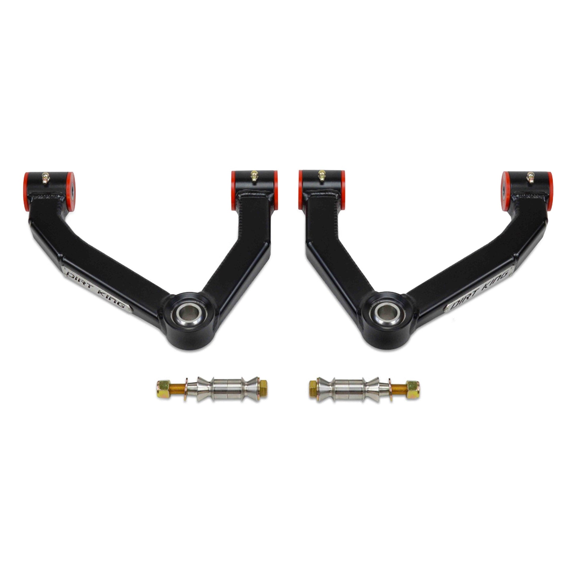 The upper control arms must be paired with OEM replacement coil overs to lift the vehicle. These arms are compatible with King, Fox, Bilstein, ADS and Icon coil overs. Do not install these upper control arms with coil spacers that over articulate the suspension.