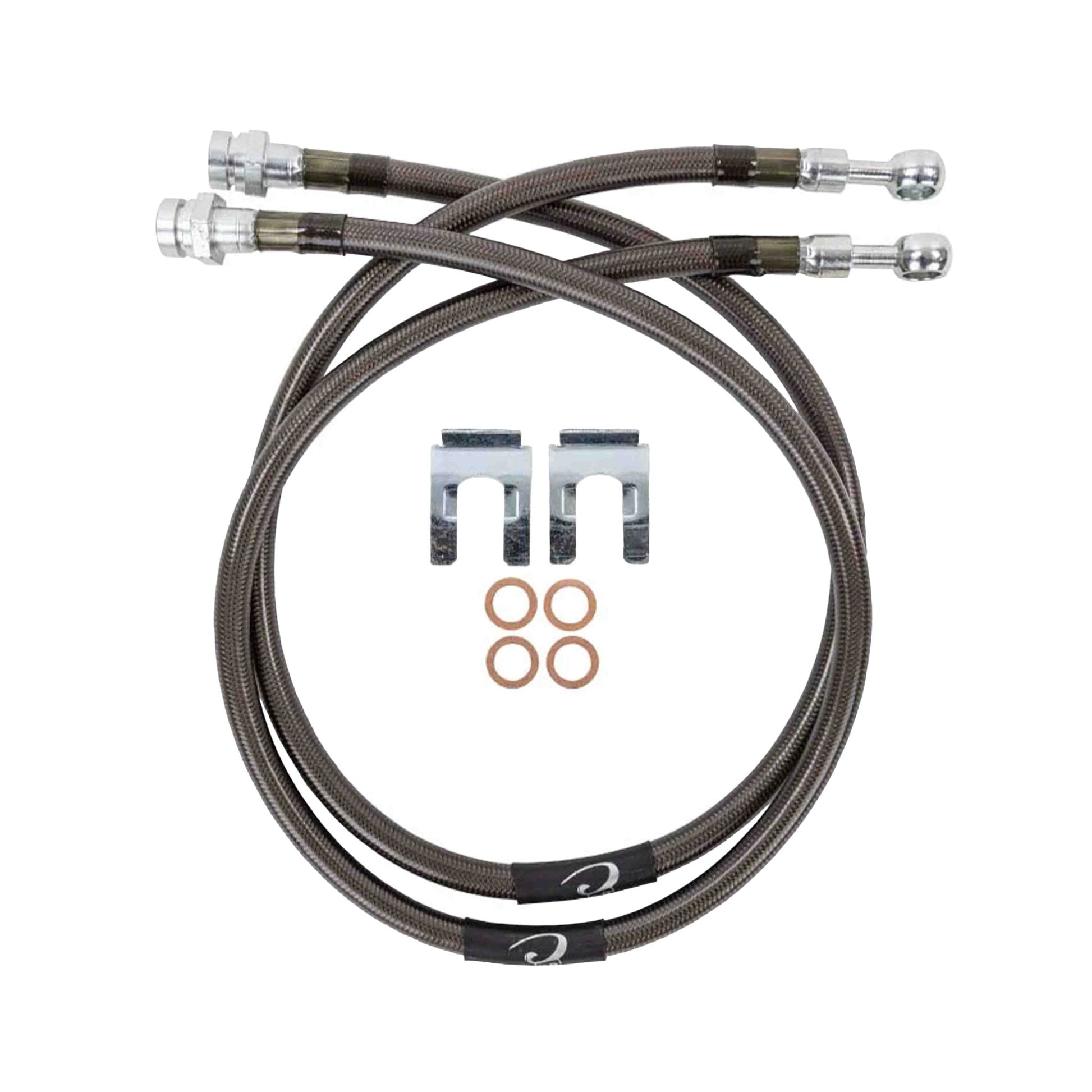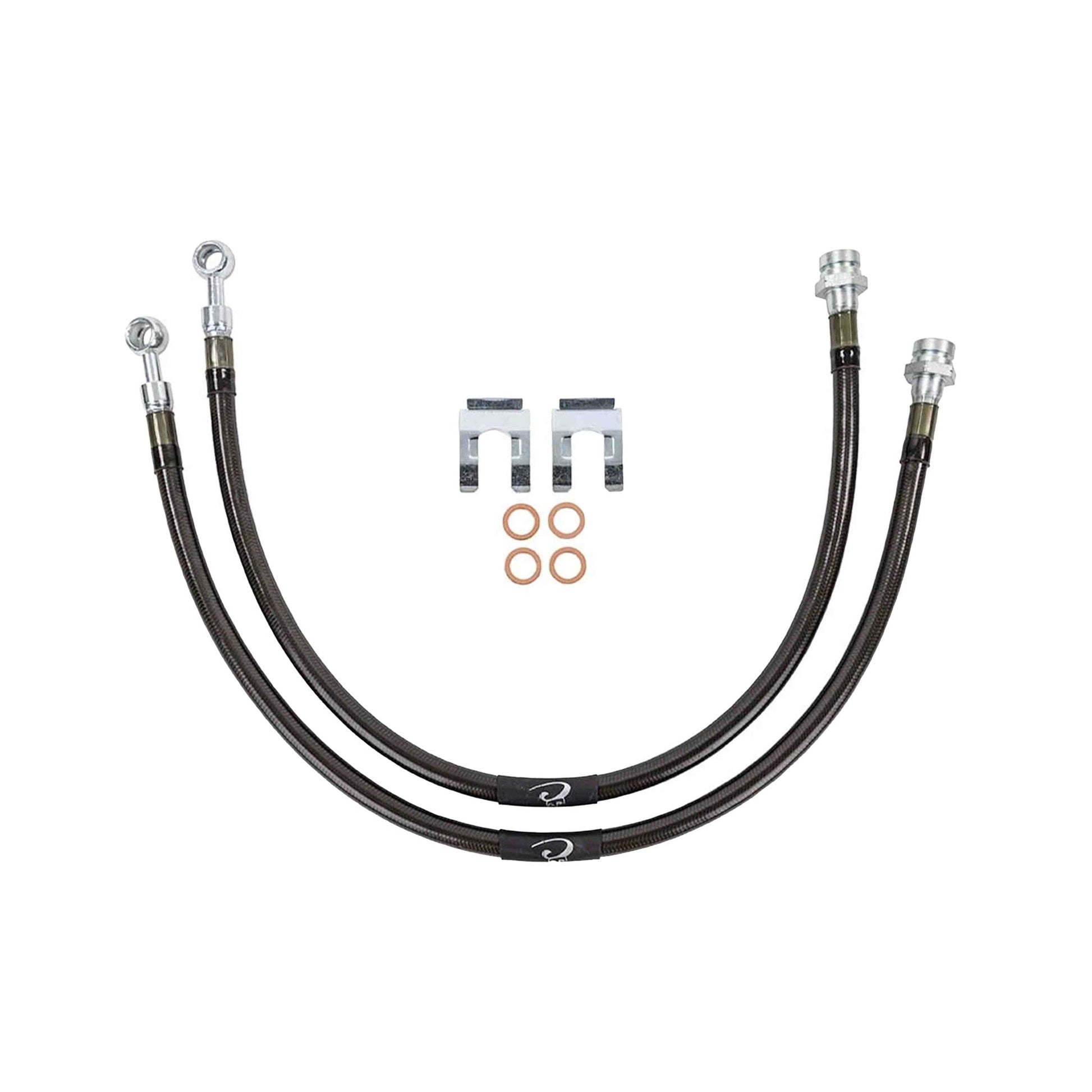 Dirt King Fabrication brake line kit features five layer stainless steel brake hoses, that are Kevlar reinforced and contain a Teflon inner core hose to minimize internal friction and volumetric expansion. They also feature unique one piece construction steel fittings that are extremely durable and reliable. These DOT approved brake hoses are compatible with all brake fluids.