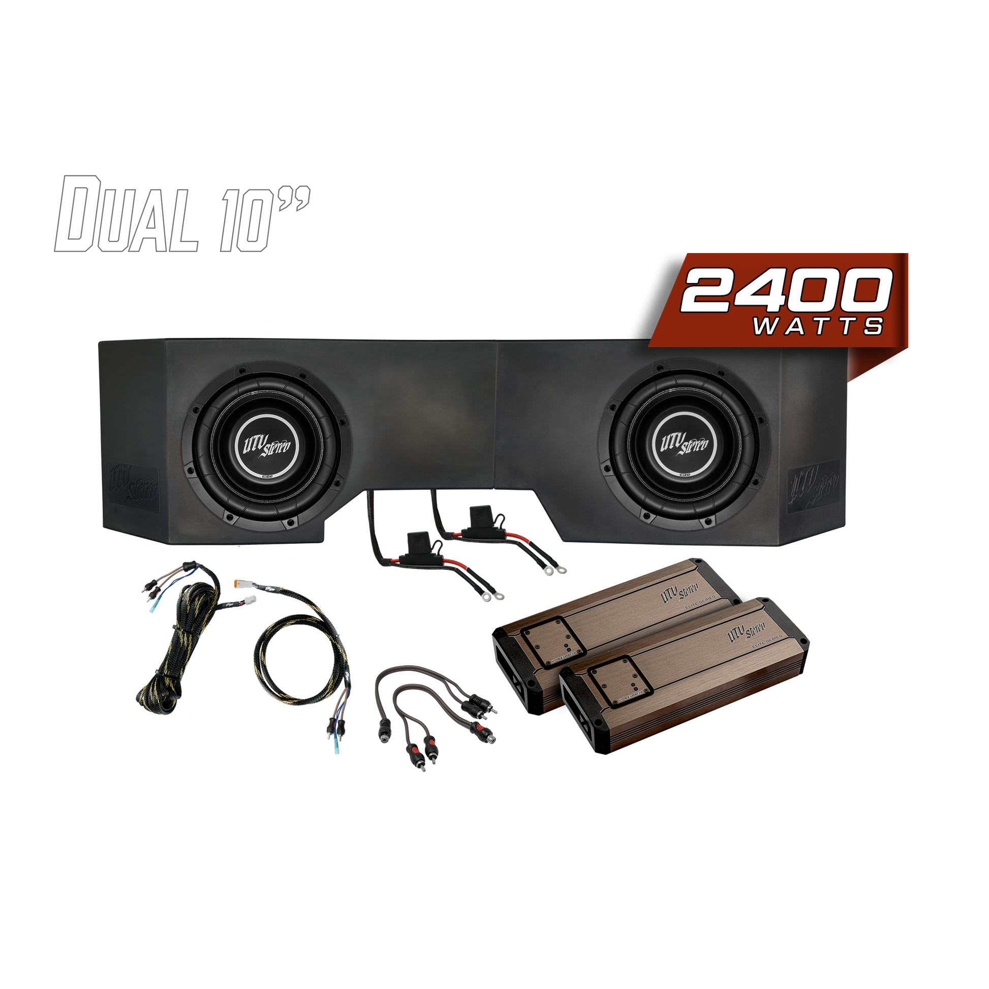 Elevate your off-road audio experience with the UTV Stereo 2400W Subwoofer Kit, designed for drivers who demand the ultimate in sound performance. Equipped with two powerful amplifiers and dual 10" subwoofers, this kit delivers unmatched bass clarity and depth that will rock your world.