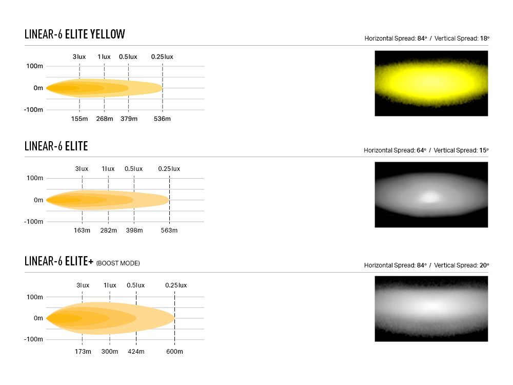 Representing an evolution in the highest performance LED lighting solutions, the Elite and Elite+ range comprises products with enhanced performance, light distribution, and functionality. Superior white light high beam function for awe-inspiring night-time visibility at a slightly softer, more relaxing color temperature with that light angled slightly down and to the sides of the road or track making this function ideal in snow, fog, or dust conditions.