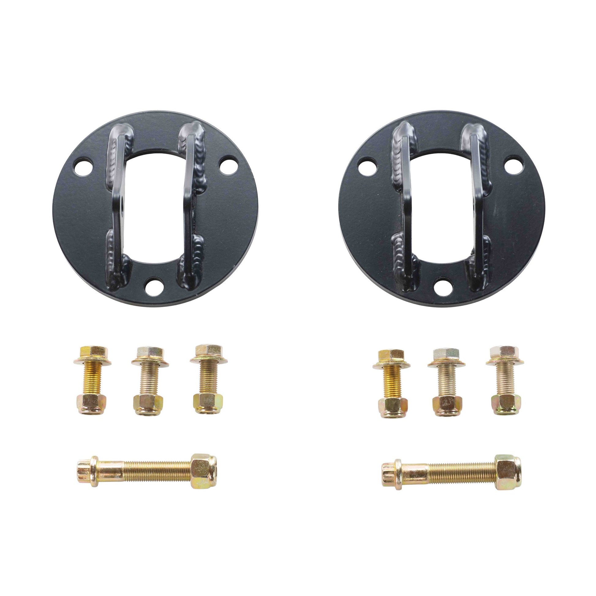 The coil bucket shock mounts are designed to mount a standard coil over into the factory coil bucket. These are the same shock mounts used with Dirt King long travel kits. They are set up for 1.5” shock spacers and include all mounting hardware.