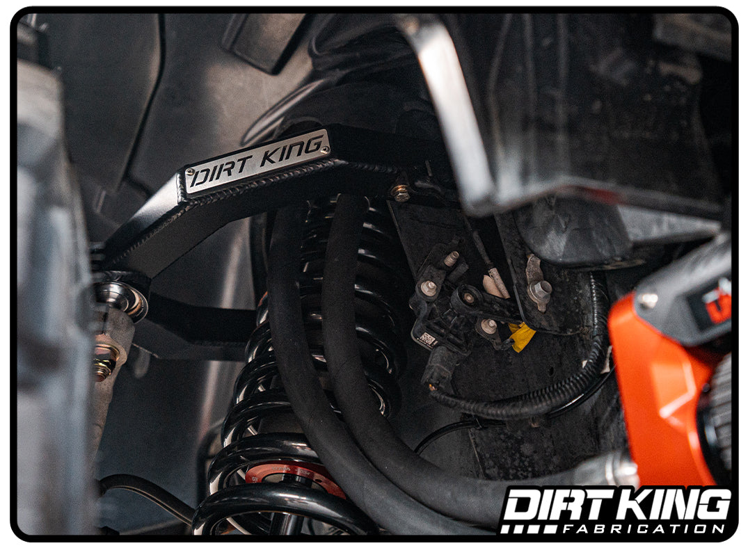 The Dirt King upper control arms must be paired with aftermarket coilover shocks to lift the vehicle. The Dirt King arms offer maximum down travel compared to the stock upper control arms. These arms are compatible with Dirt King, King, Fox, Bilstein, ADS and Icon coilovers. Do not install these upper control arms with coil spacers paired with extended length aftermarket shocks.