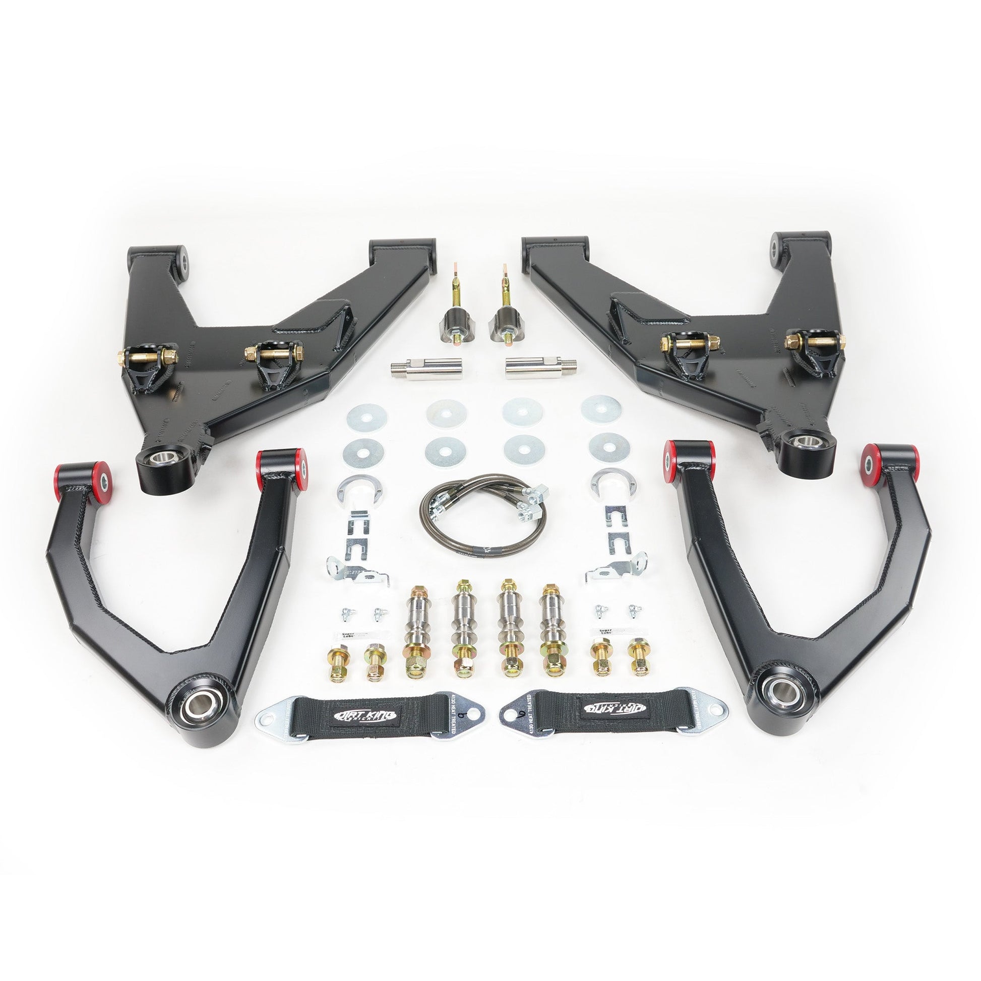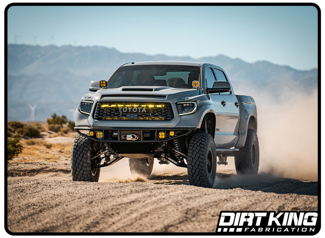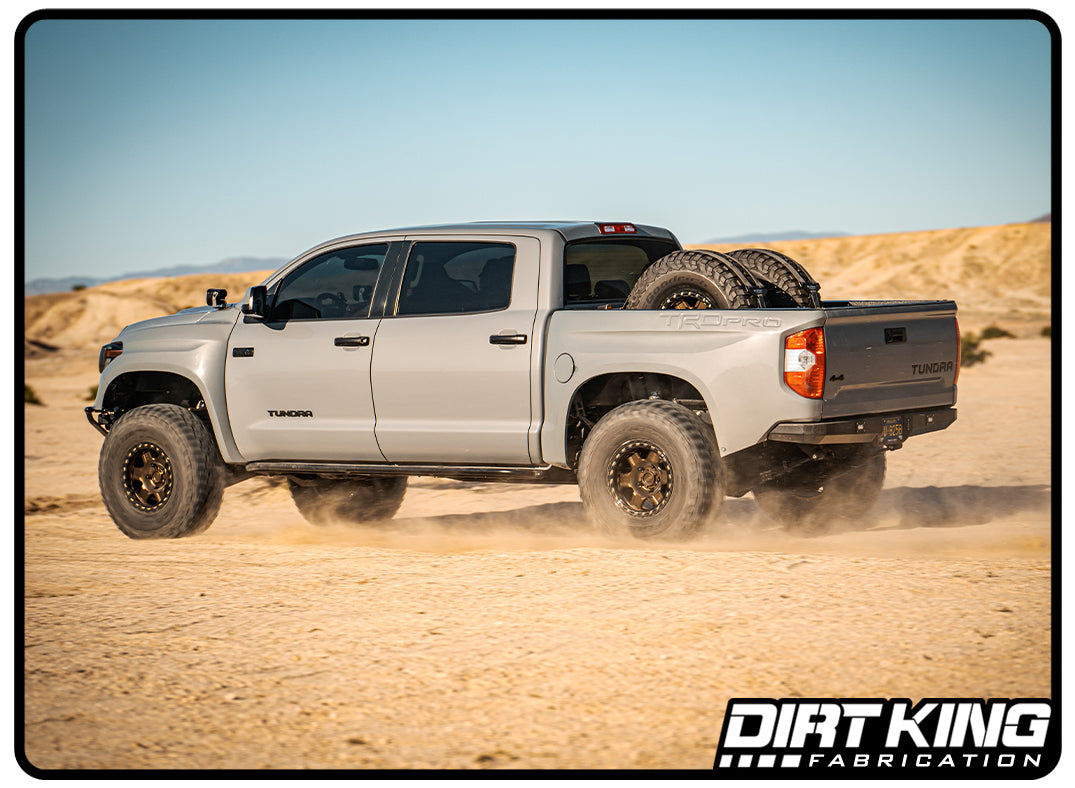 The Dirt King long travel kit was developed to drastically improve the vehicles off-road handling without compromising its day to day driving characteristics. This suspension system allows for 14.5” of travel and accepts up to a 37” tire. The kit is compatible with 2WD models and 4WD models along with the purchase of extended axle shafts. Our upper and lower arms are designed with 1” stainless steel uniballs for the outer pivots instead of ball joints for strength and increased articulation. Compared to the competition we’ve gained several inches of ground clearance by mounting the lower arms in the factory location instead of below it. This kit is CAD designed, thoroughly tested, and 100% made in America resulting in a product we’re proud to put our name on!