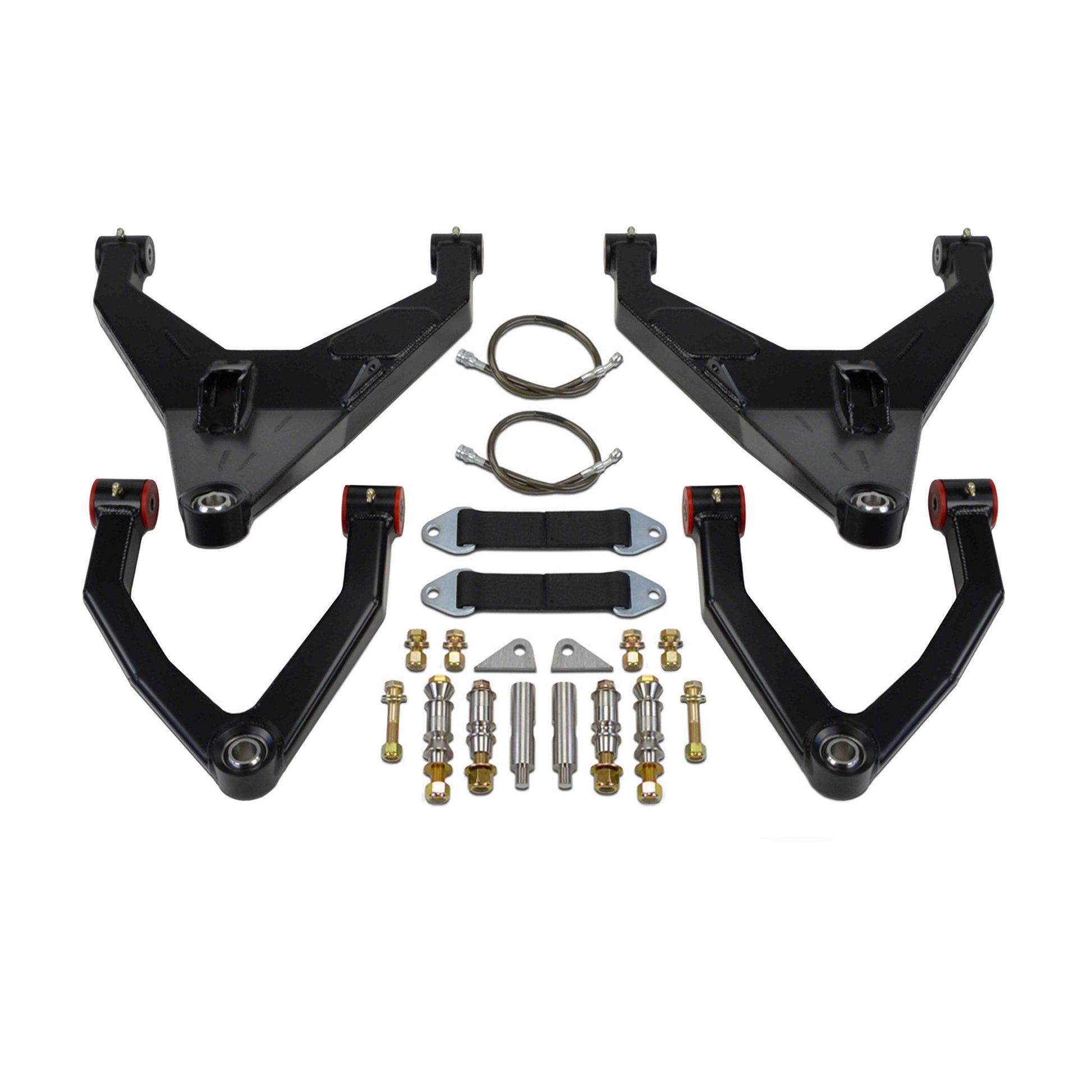 The Dirt King long travel kit was developed to drastically improve the vehicles off-road handling without compromising its day to day driving characteristics. This suspension system allows for 13.5” of travel and accepts up to a 35” tire. Our upper and lower arms are designed with 1” stainless steel uniballs for the outer pivots instead of ball joints for strength and increased articulation. This kit is CAD designed, thoroughly tested, and 100% made in America resulting in a product we’re proud to put our name on!