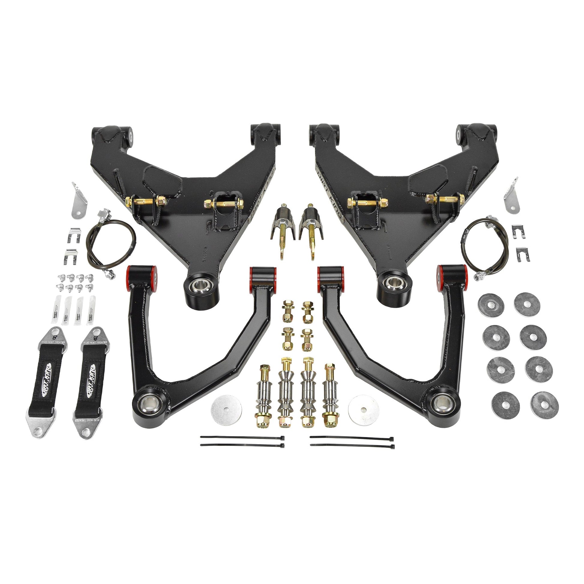 The Dirt King long travel kit was developed to drastically improve the vehicles off-road handling without compromising its day to day driving characteristics. This suspension system allows for 13.5” of travel and accepts up to a 35” tire. The kit is compatible with 2WD models and 4WD models along with the purchase of extended axle shafts. Our upper and lower arms are designed with 1” stainless steel uniballs for the outer pivots instead of ball joints for strength and increased articulation. Compared to the competition we’ve gained several inches of ground clearance by mounting the lower arms in the factory location instead of below it. This kit is CAD designed, thoroughly tested, and 100% made in America resulting in a product we’re proud to put our name on!