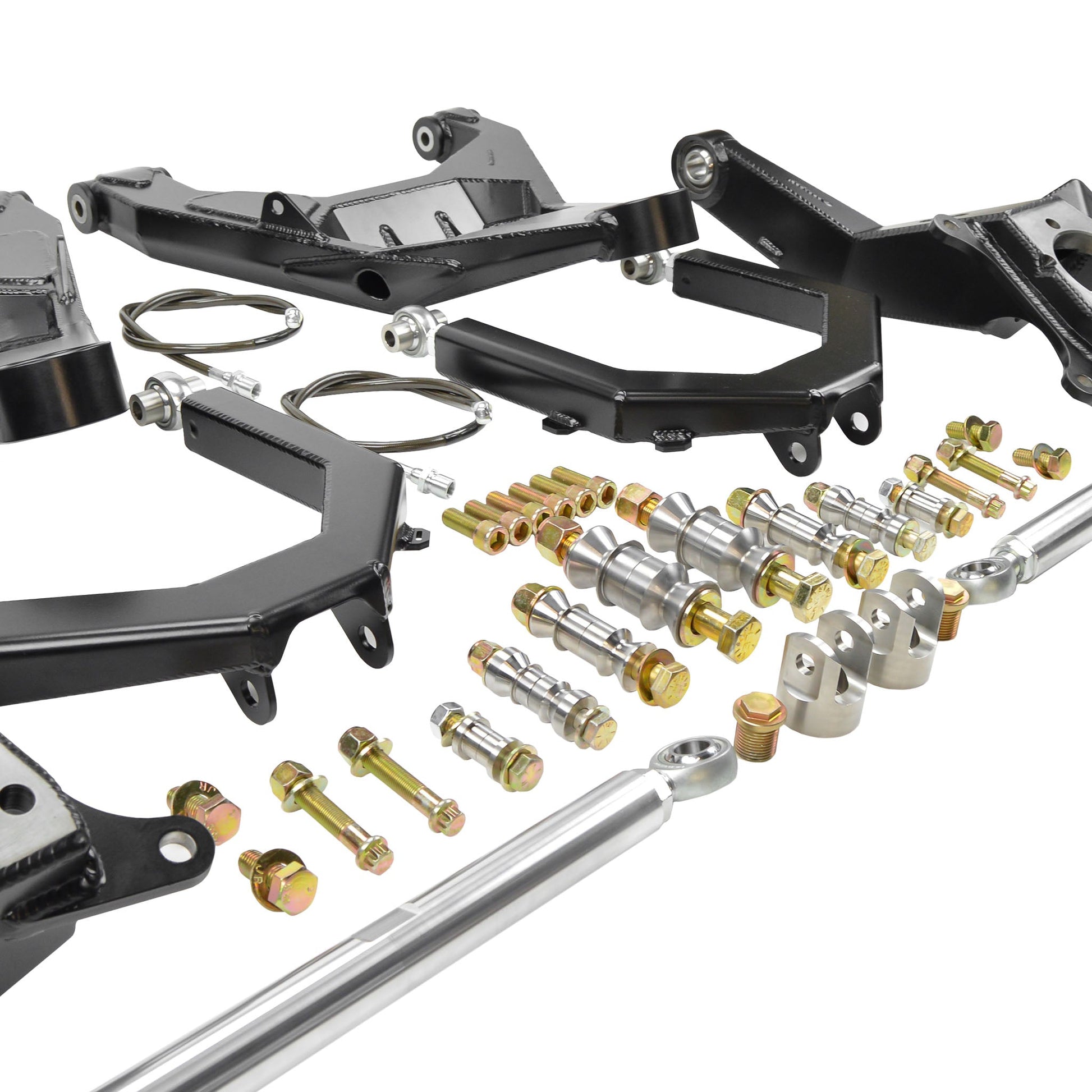 This suspension system was developed for the most extreme off-road terrain. The long travel race kit is capable of 17.5” of travel and can accept up to a 37” tire. We have perfected the suspension geometry by relocating the upper control arm mounts and modifying the outer pivot locations on the spindle. With these changes we were able to achieve twice the amount of travel compared to stock and eliminate bump steer throughout the suspension cycle. The kit accepts 2.5 x 10” coil overs, 3.0 x 10” bypasses, and 2.0 X 2.0 bump stops for superior suspension dampening. This kit is constructed using parts commonly found on trophy trucks such as massive Probearing 1.5" uniballs and JMX series heims. The result is a suspension system with reliable performance and off road handling that will exceed all expectations. This kit must be installed by a qualified off road shop.