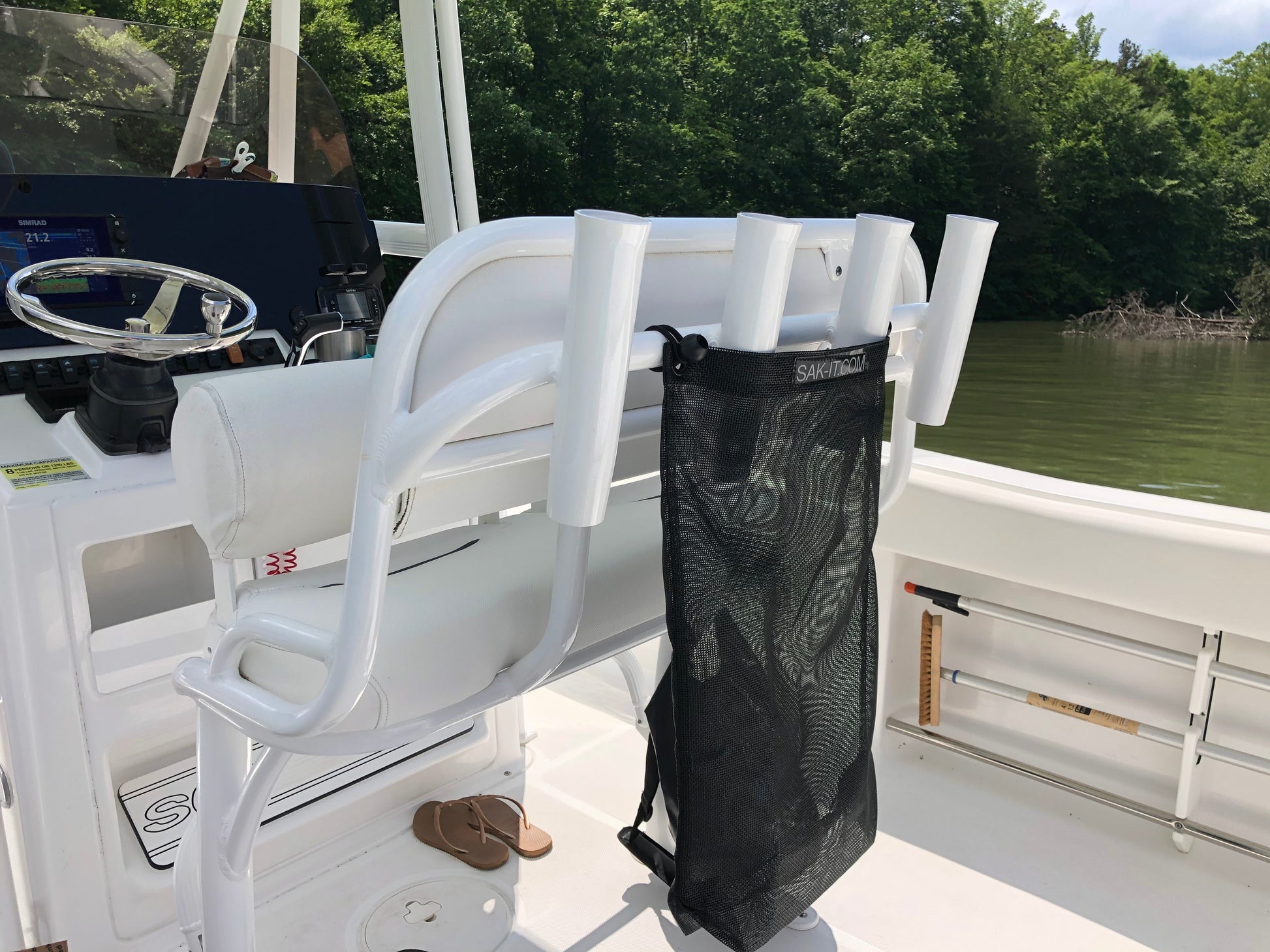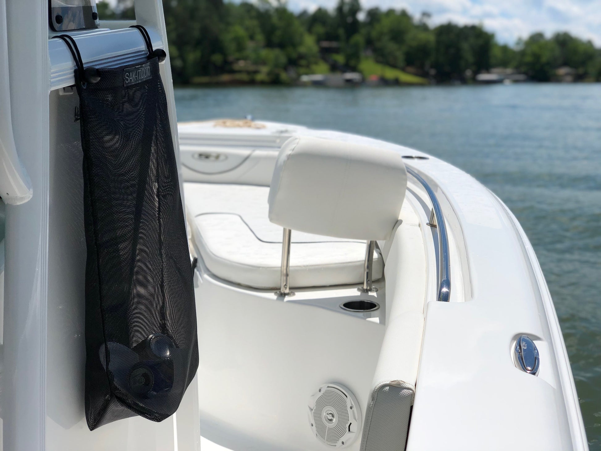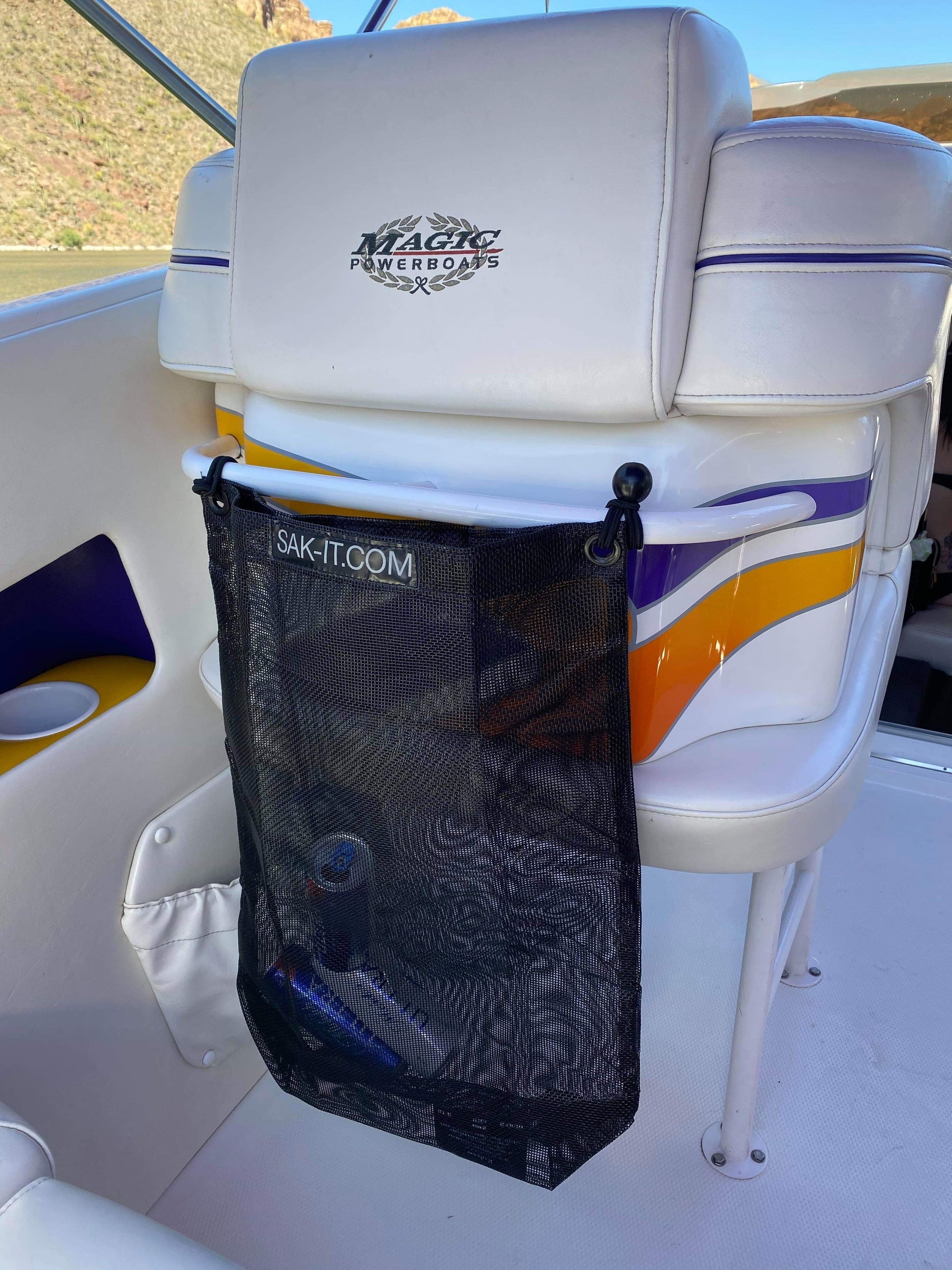 The Scrap SAK easily attaches to your boat by using the included Bungee Balls. These will handle any weather being UV and Mildew resistant, as well as they handle the wind with ease.