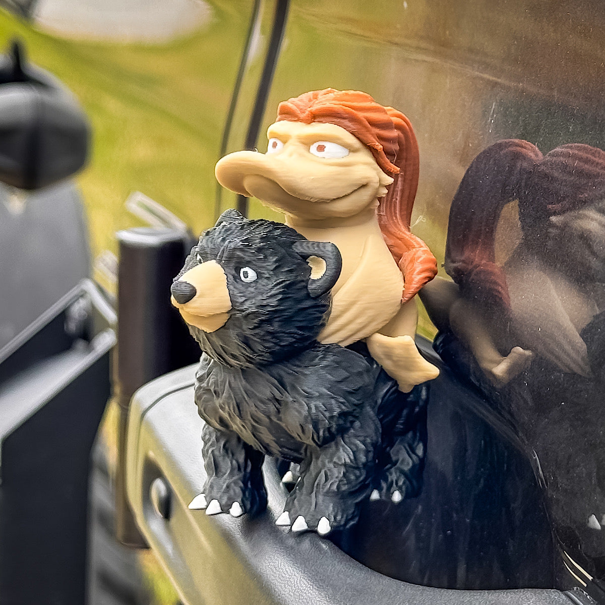 ** DuK's are made from PLA plastic, which can warp in extreme heat. 120-140F heat has shown to cause warping on PLA parts that are under stress, (mounts, arms, thinner parts) These DuK's should not be under any stress, but we urge you to take that into consideration on extremely hot summer days, where car dash locations may reach these temperatures. Our suggested advice is to keep them indoors where moisture, heat and UV rays are not an issue, however, in most cases, they should stand up fine in your car.