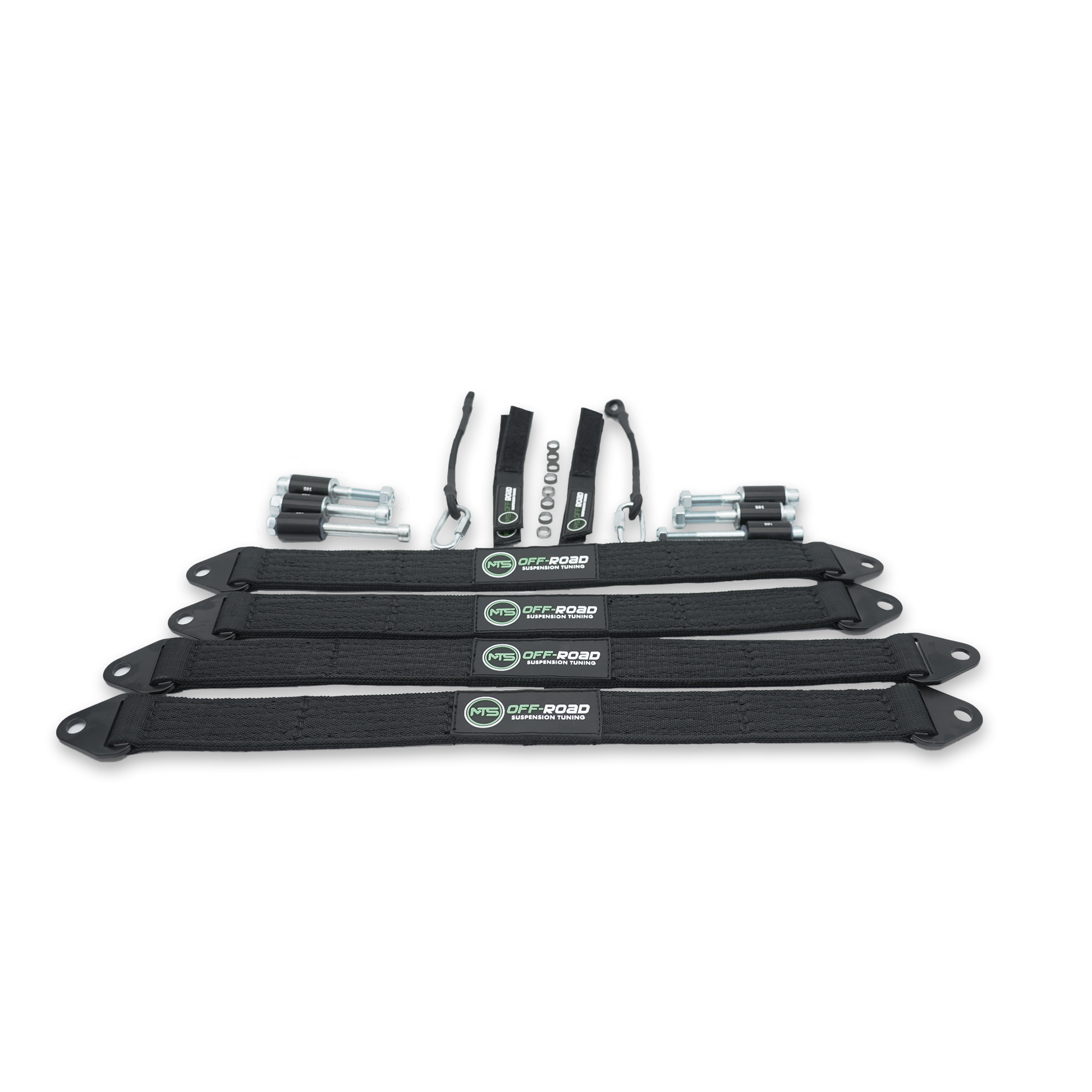 Removes Clunking: During the tuning process of shocks, the rebound is sped up, which causes the undesired "clunking" noises when the suspension tops out. MTS Limit straps prevent these noises from developing by limiting the travel and preventing the suspension from hitting full droop.