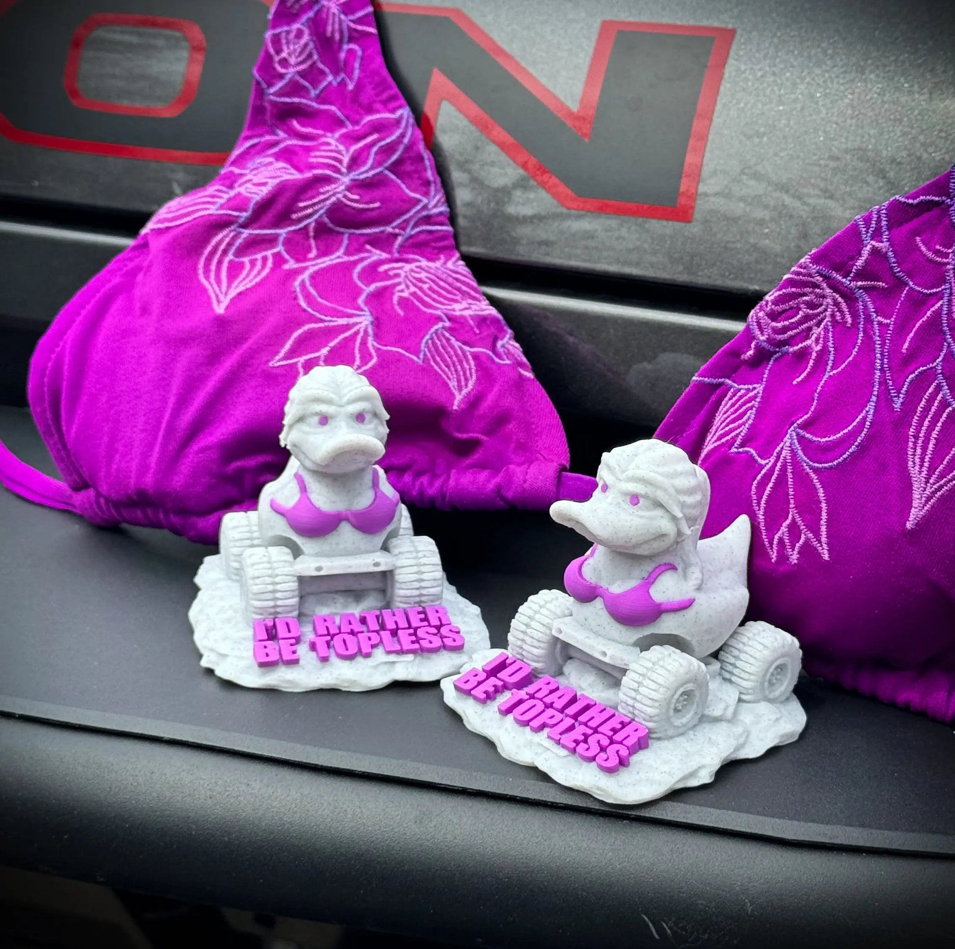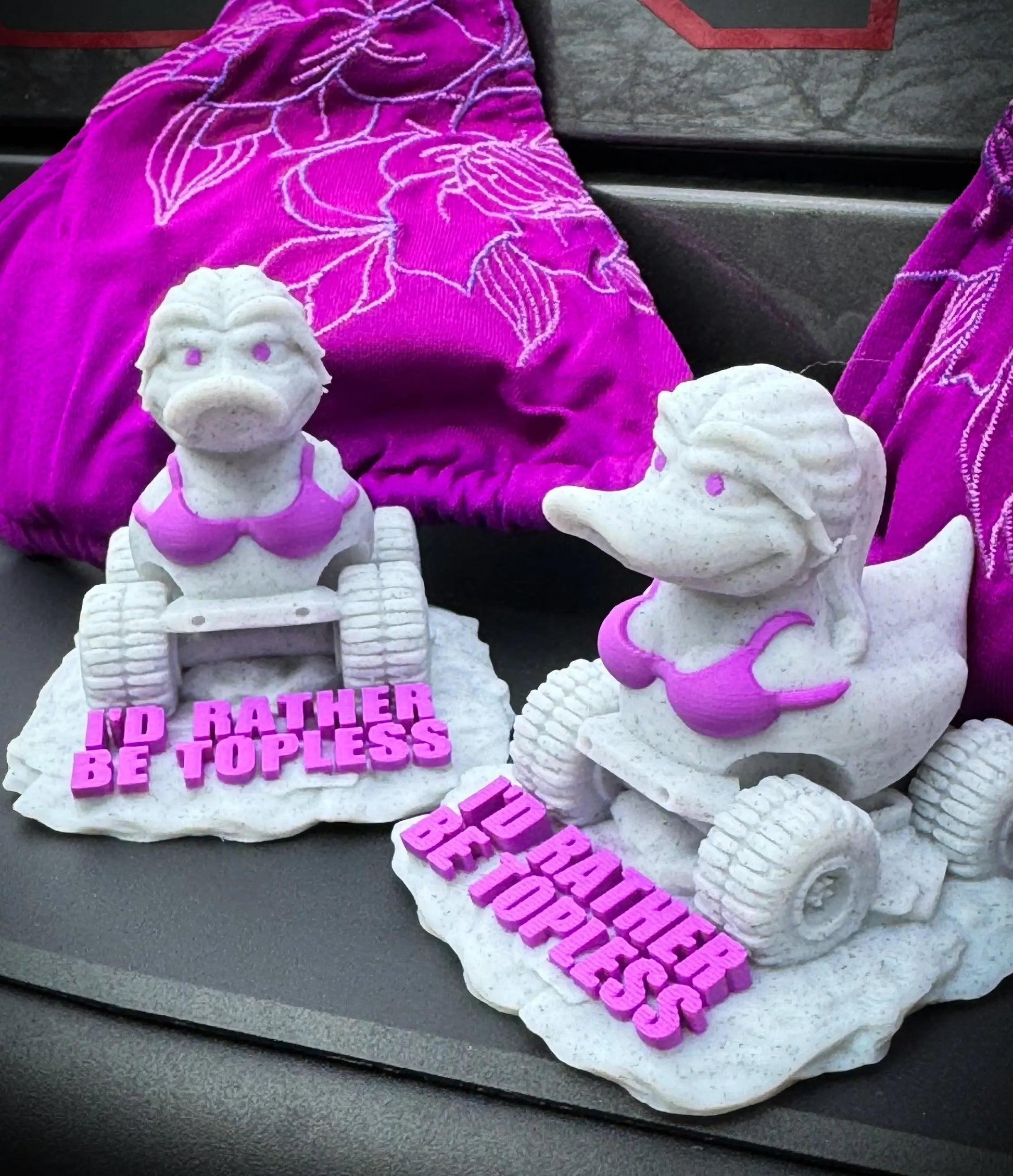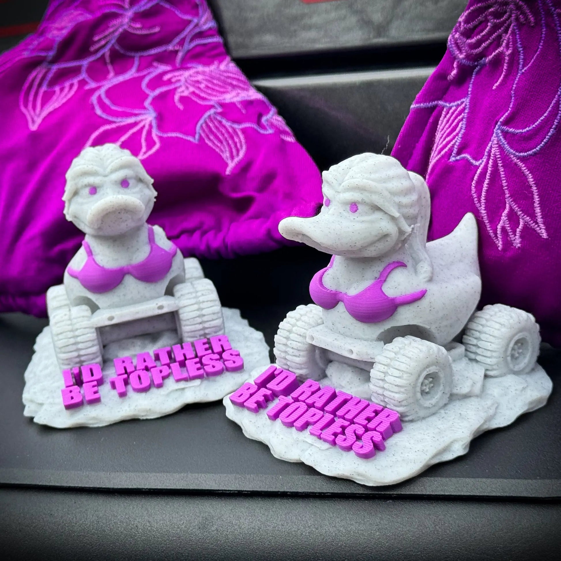** DuK's are made from PLA plastic, which can warp in extreme heat. 120-140F heat has shown to cause warping on PLA parts that are under stress, (mounts, arms, thinner parts) These DuK's should not be under any stress, but we urge you to take that into consideration on extremely hot summer days, where car dash locations may reach these temperatures. Our suggested advice is to keep them indoors where moisture, heat and UV rays are not an issue, however, in most cases, they should stand up fine in your car.