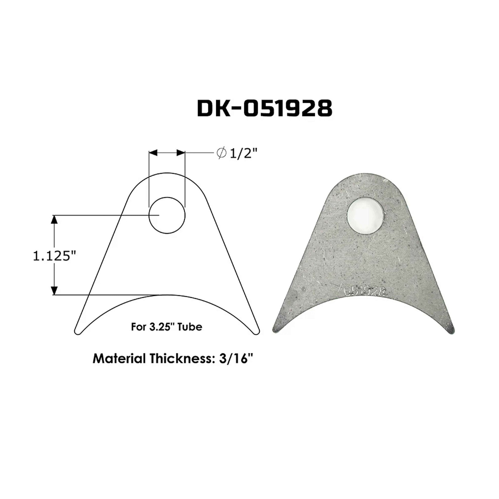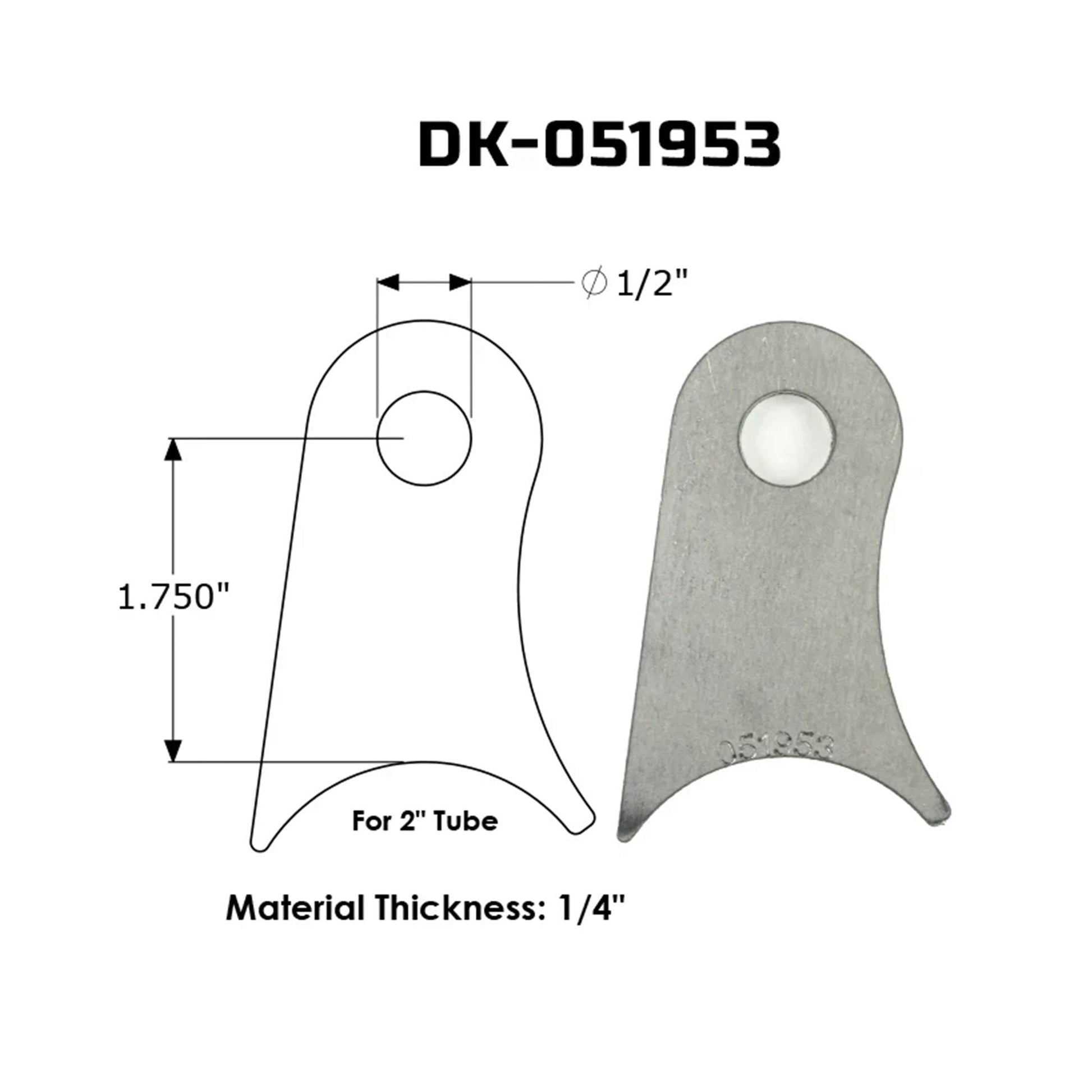 The shock tabs are made from 1/4" or 3/16" plate. These tabs are great to mount bypass shocks, coilovers, air shocks, or to mount anything with a 1/2" hole.
