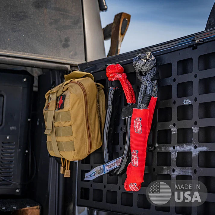 Typically, in recovery, there's a metal D-Shackle (aka Clevis, Bow Shackle, thingumajig, tow point or whatever you call it in your local dialect) that you can attach your recovery rope to. Those suckers are heavy and are usually multiple pieces that get dropped in the mud. Who likes muddy metal parts when you're in need of Recovery?