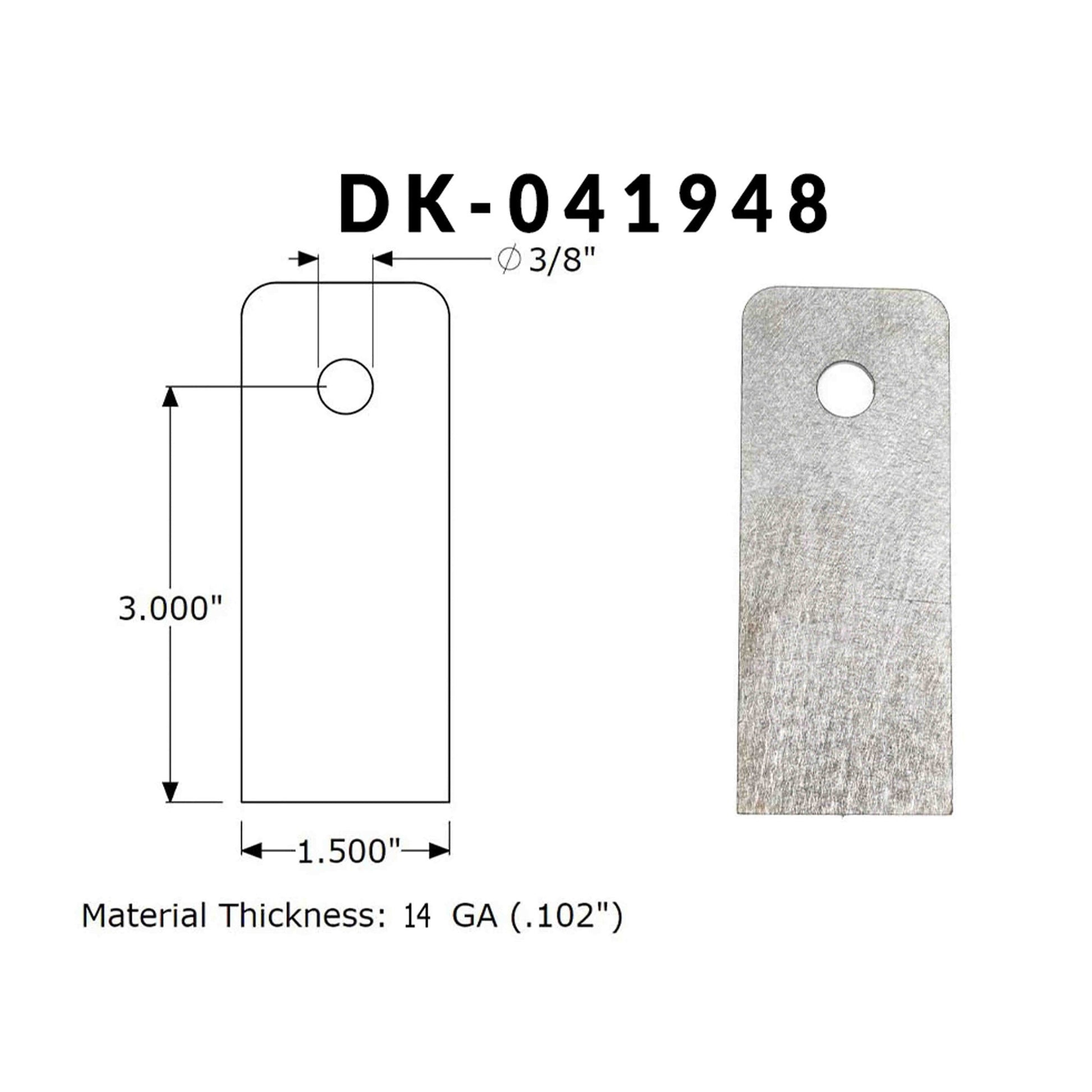 These specialty tabs are laser cut from mild steel and vary in thickness. See individual item images for thickness and tab dimensions.