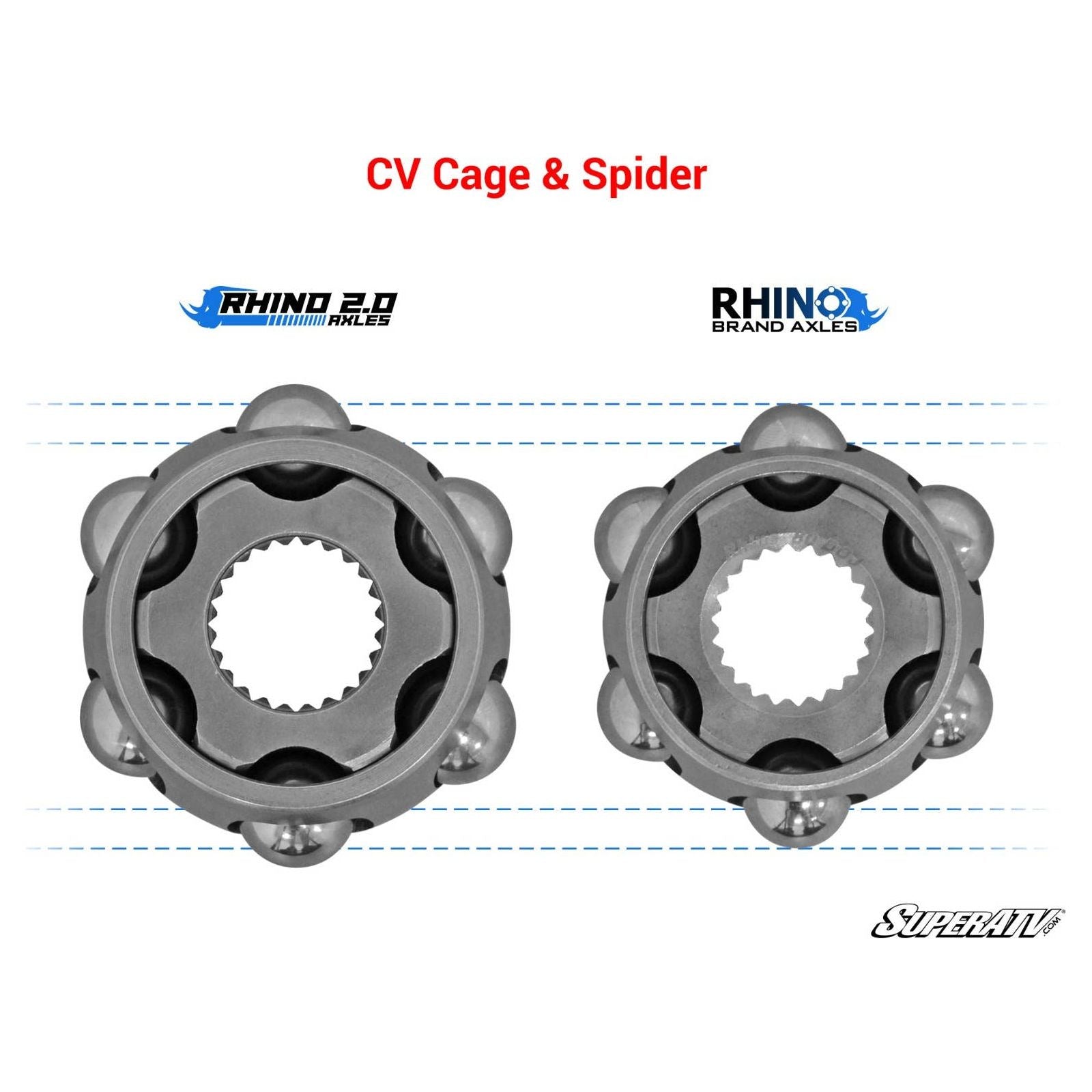 Better Materials and Design—the Rhino 2.0 Formula: What makes Rhino 2.0 so strong? They’re SuperATV axles that use an all-chromoly construction—from tip to tip, this advanced alloy gives our axles more strength and durability. We couple that with bigger axle shafts and CV joints for nearly two times the strength of stock UTV axles and cool joints even at high articulation angles. We were careful not to go overboard though: these axles are built to break before your expensive differential does. And it’s all made with the performance-boosting Rhino 2.0 formula: