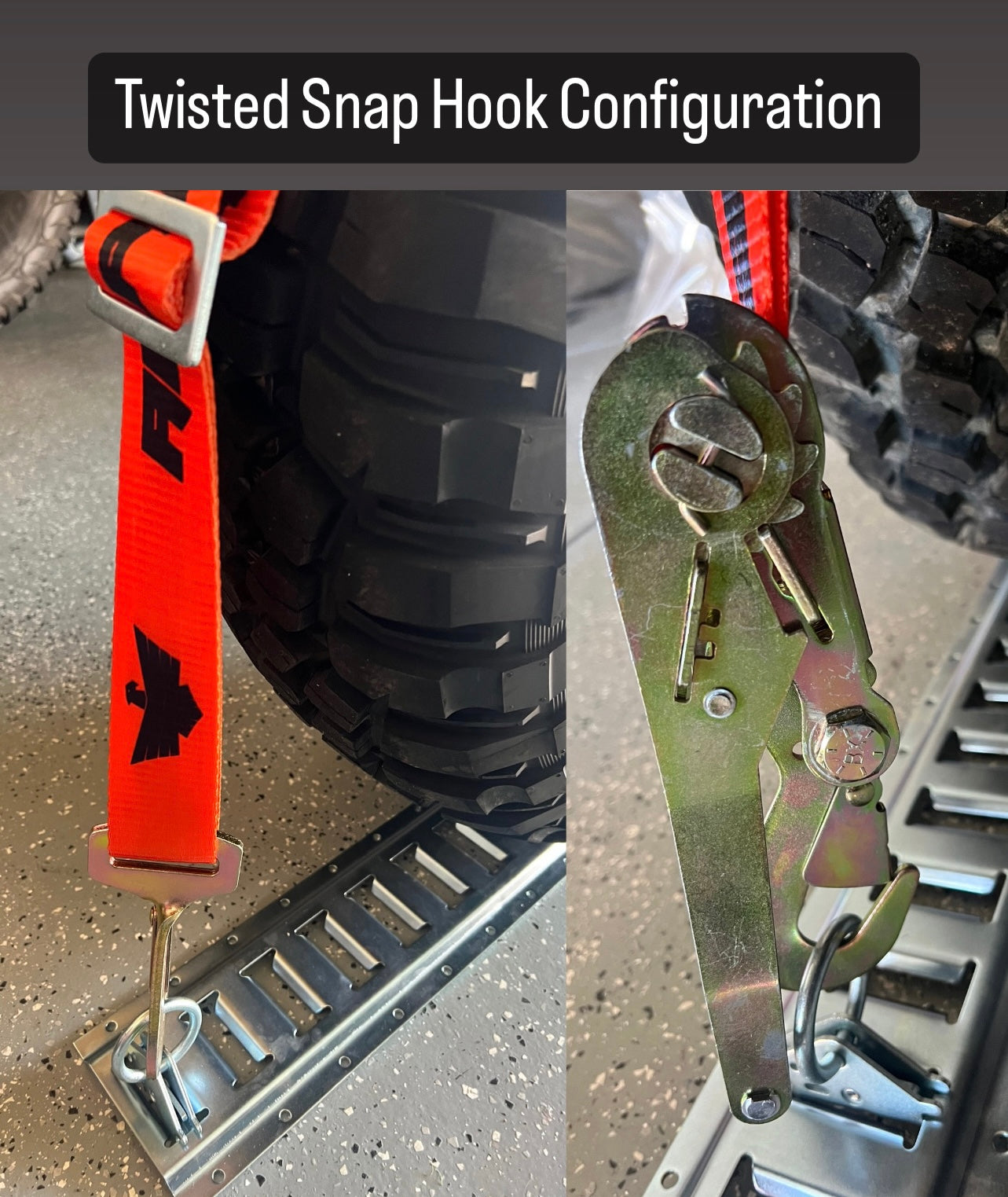 - TWISTED SNAP HOOK FITTING INCLUDES-RATCHET WITH BUILT IN SNAP HOOK AND 1 TWISTED SNAP HOOK