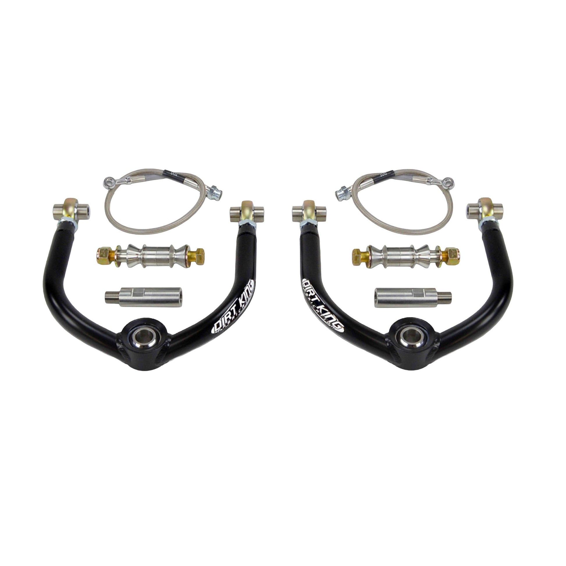 The Titan swap kit is the most affordable route to improve your vehicle’s front-end handling. This kit is developed to pair with Titan lower control arms to increase the front track width 3” per side. The kit is both 2WD and 4WD compatible along with the purchase of extended axle shafts. The upper control arms are designed with increased castor and repositioned pivot angles reducing stress on the joints. The increased castor allows for proper alignment and improved handling. We also replaced the weak factory ball joints with 1” stainless steel uniballs for maximum strength and increased articulation. To mount the arms to the spindle we include high grade 17-4 stainless steel misalignment spacers and military grade F911 hardware. All of the components on our upper control arms are rebuild-able or replaceable to make this product last a lifetime. The arms come preassembled and include detailed instructions for easy installation.
