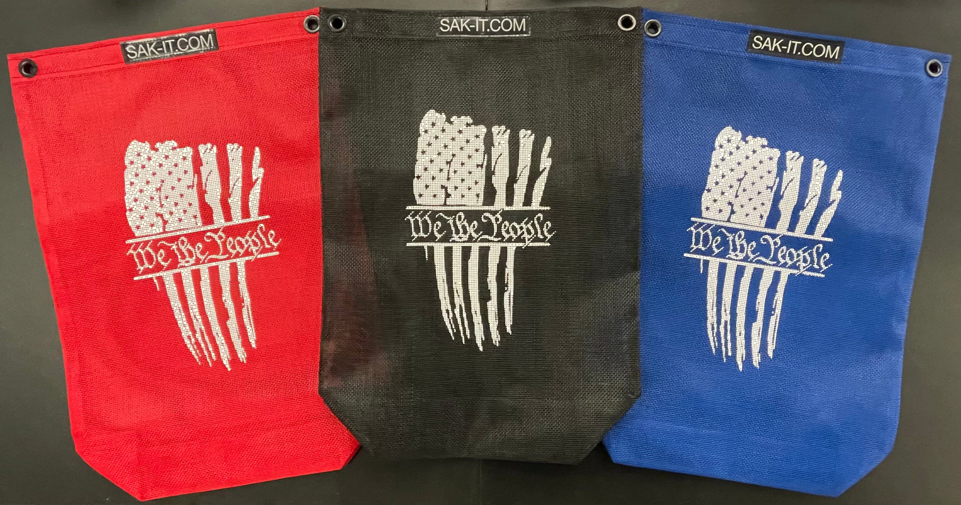 Scrap SAK with We The People Flag Logo. Comes in Black, Red, or Blue. Includes 2 Ball Bungees for mounting.